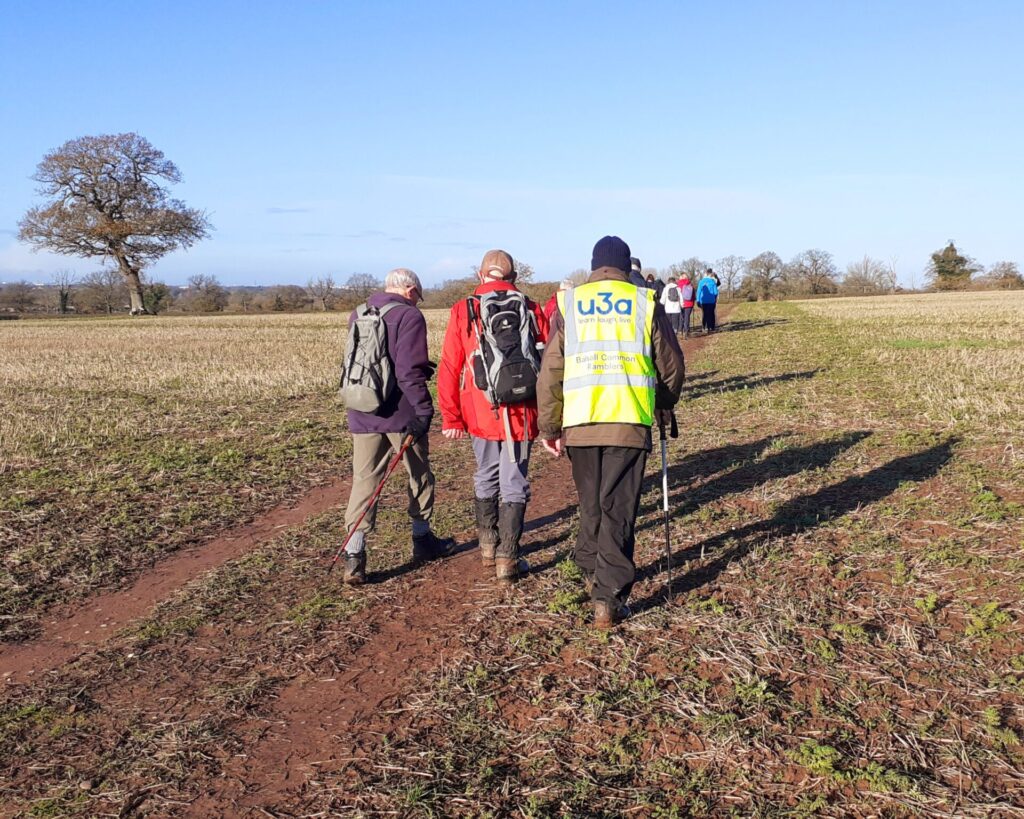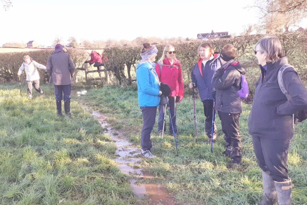8 hardy members of the Ramblers Group met at the Hatton Arms. On a cold but dry day, led by Robin Peacock They walked along the canal to Dark Lane past the entrance to Hatton World and then headed cross country. Using farm tracks and some very muddy fields.