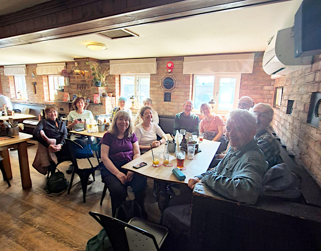 The ramblers met at the Hatton Arms and led by Leslie and Carolyn de Chernatony enjoyed a 5 mile circular walk across fields, along farm tracks and returning along the tow path of the Grand Union canal alongside the Hatton Locks.